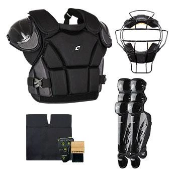 As your young catcher continues to grow, make sure they stay safe behind the plate with the All Star Intermediate Players Series Catcher’s Kit. It includes everything they need to protect them from head to toe, including a hockey-style helmet, chest protector, a pair of leg guards, throat guard, and a convenient carry bag.
