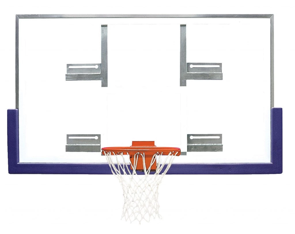 Make the transition… Go from old fan-shaped steel or glass backboards to popular 42″ x 72″ rectangular glass backboards normally without modification or relocation of your existing wall or ceiling support structures • The 35″ wide x 20″ high rear structure mounting pattern is the standard in the industry for most fan-shaped gym backboards and structures • Unconditional lifetime warranty.