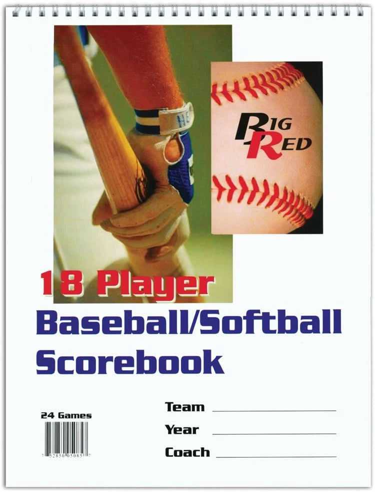 Large scoring squares. 18-players and subs with pitch count. Line-up cards. Scores 24-games. Season summary chart for each player. Batting average charts. 9 1/4″ x 12″.