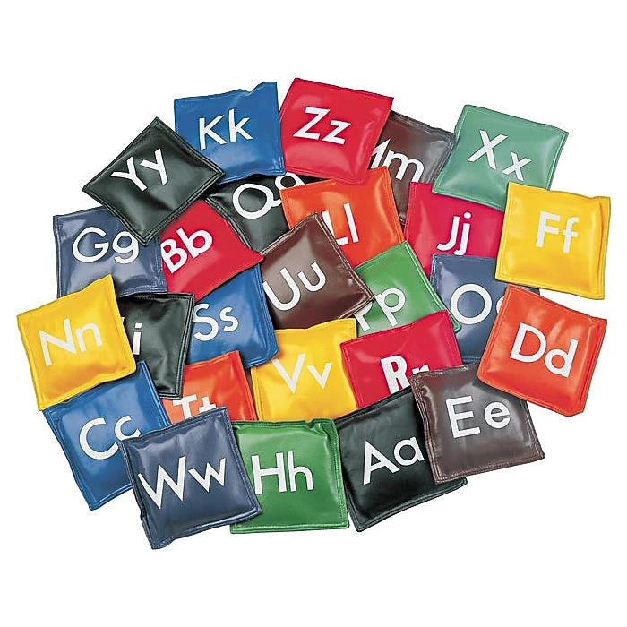 Vinyl-covered 5″ bean bags are soft, fun and educational. Alphabetized bean bags create endless game possibilities. Bags are lightweight and colorful, making them more desirable for kids. Colors include blue, red, yellow, green, orange, purple, black and brown. 26 bean bags per set.