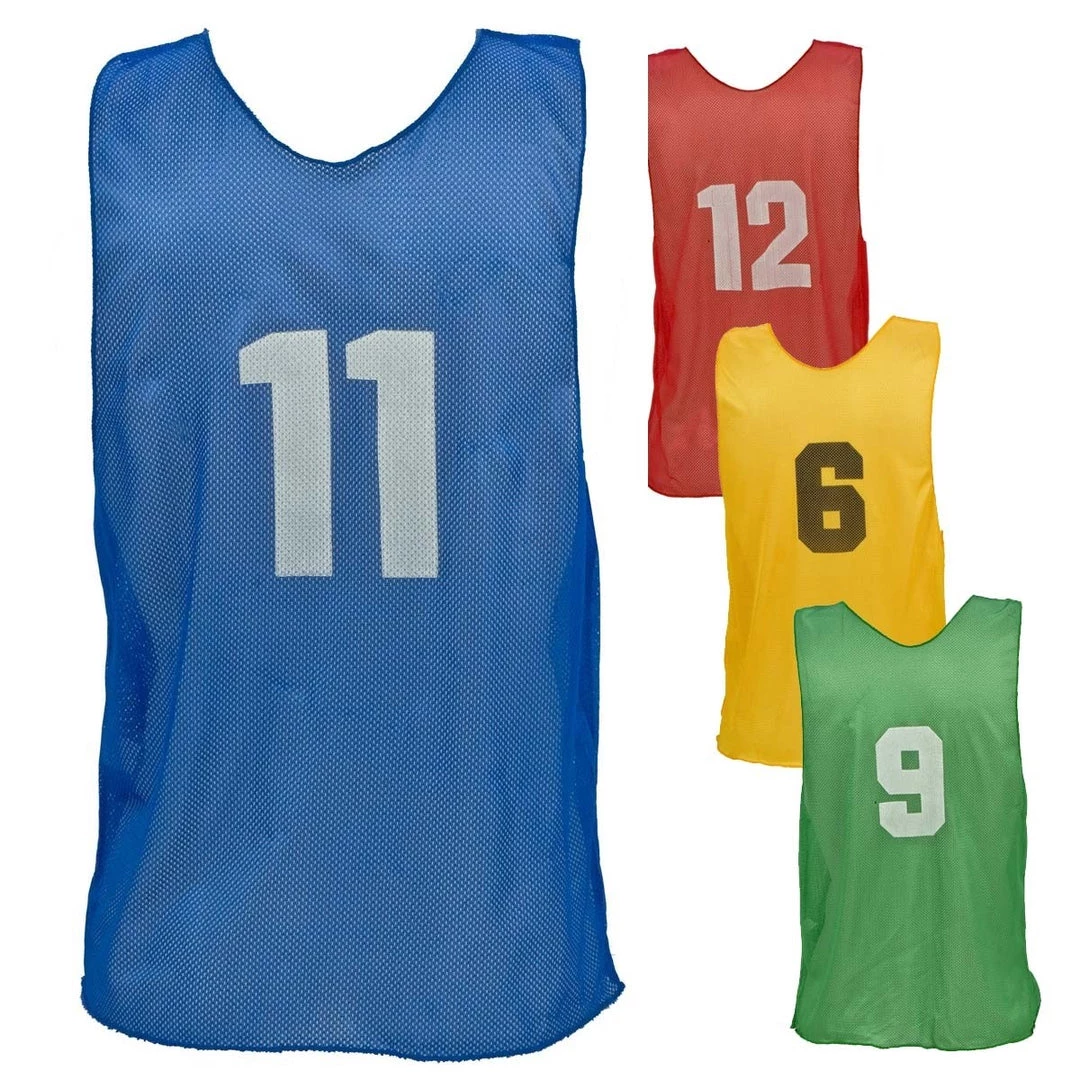 Hold your practice in this numbered scrimmage vest pinnie, designed to better identify players. The 100% nylon micro-mesh design offers comfort. Reinforced neck and armholes add extra durability. Youth size. SET OF 12 NUMBERED 1-12