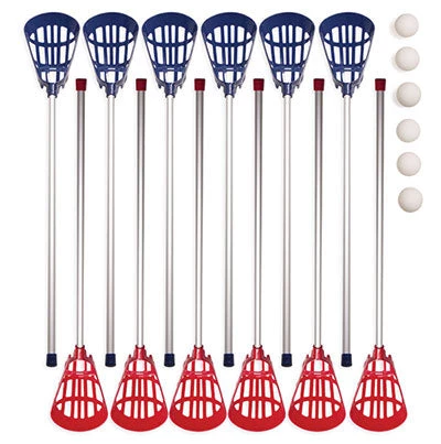 Designed for practice, games, and Phys. Ed. classes, the Champion Sports Soft Lacrosse Set is a great way to get young or amateur players involved in the sport. With everything necessary to play a game, this lacrosse set features 12 lightweight aluminum sticks and 6 vinyl lacrosse balls. Additionally, the collapsible plastic head means players will not require additional safety equipment.