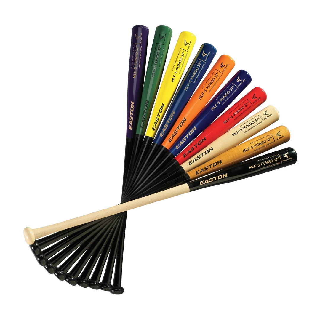 Constructed from rock hard North American Maple for lasting durability, the Easton MLF5 Fungo bat features a large engraved barrel with cupped end making a light and easy to swing bat.
