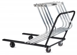 Designed for use with rocker or “L” shaped hurdles. Walk in design easily holds 10 hurdles. Powder coated, all steel construction with swivel casters for easy handling.