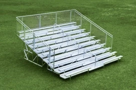 Durable, Light-weight, portable bleachers, with all aluminum construction. Standard features include; an aluminum angle understructure with an 8″ rise & a 24″ run, double 2×10 footboards, risers, 2×10 clear anodized seat planks, vertical aisle, and chainlink guardrail system. All Outdoor Aluminum Bleachers are designed in accordance with the IBC 2009, and ICC 300-2007 building codes.