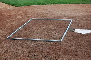 Telescoping, push button construction adjusts for 4′ x 7′ official baseball, 4′ x 6′ little league and 3′ x 7′ softball. Heavy duty 1″ square galvanized steel construction features a home plate guide for easy alignment.